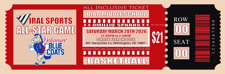 - Access to the Viral Sports DIAA Middle School Basketball All Star Game from 12:15 PM to 2:30PM